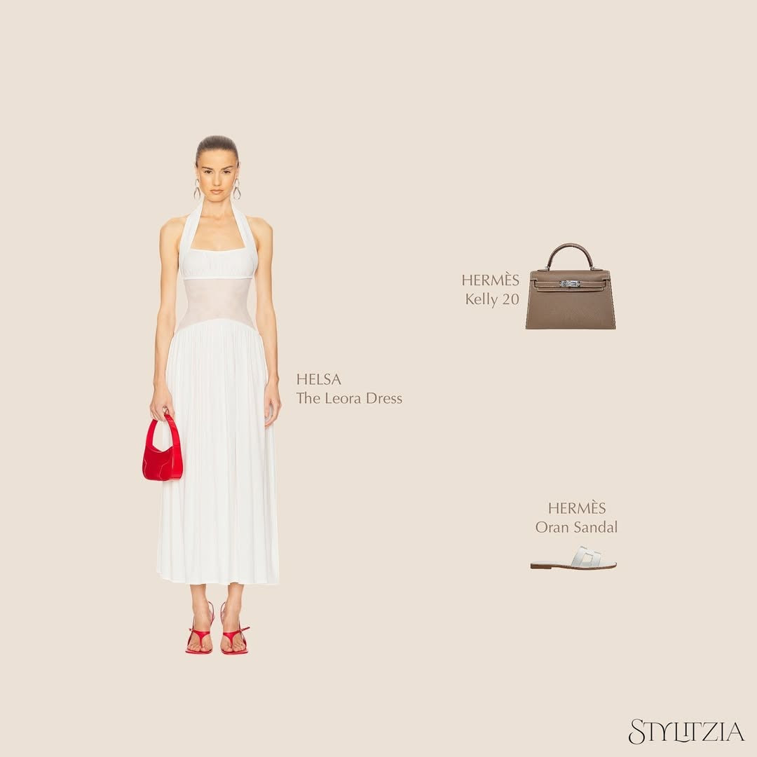 Leora Dress — a clean halter silhouette with soft pleats and delicate transparency.